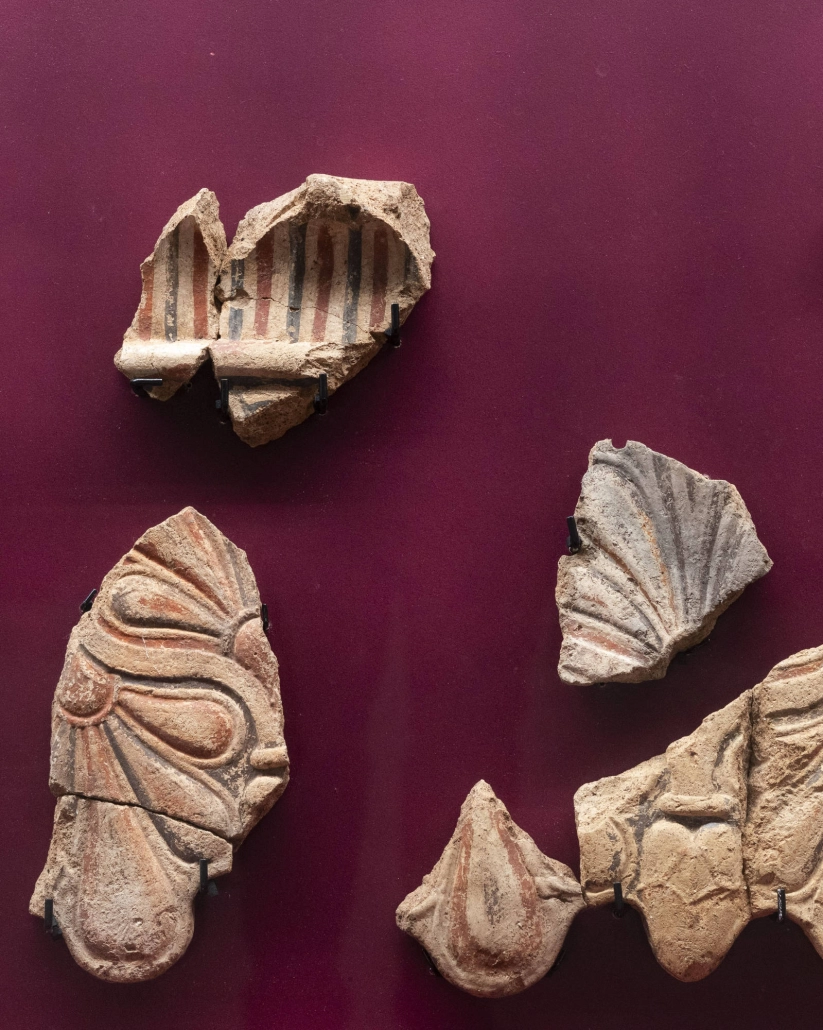 La prima sala è dedicata al racconto degli scavi di Maiuri nel Lazio, con i reperti del Santuario della Marica alla foce del Garigliano, in cui l’archeologo ha rinvenuto un antico tempio consacrato alla divinità italica, ninfa dell’acqua e delle paludi, signora degli animali, protettrice dei bambini e dea della fecondità. Accanto ai documenti di archivio relativi agli scavi, sono esposte le offerte votive alla divinità e un’antefissa a testa femminile in terracotta che decorava il tetto del tempio. A ricreare l’atmosfera misteriosa del tempo contribuisce la riproduzione audio di un passo del giornale di scavo di Maiuri, che narra questo luogo mistico con un sottofondo di suoni evocativi.